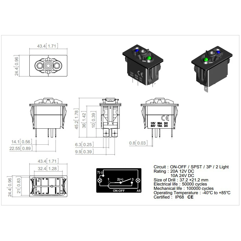 Верхний зеленый и нижний синий светодиодный клавишный переключатель-воздушный компрессор-3-контактный SPST ВКЛ-ВЫКЛ для автомобиля катера Мейн клавишная панель переключателя сделай сам