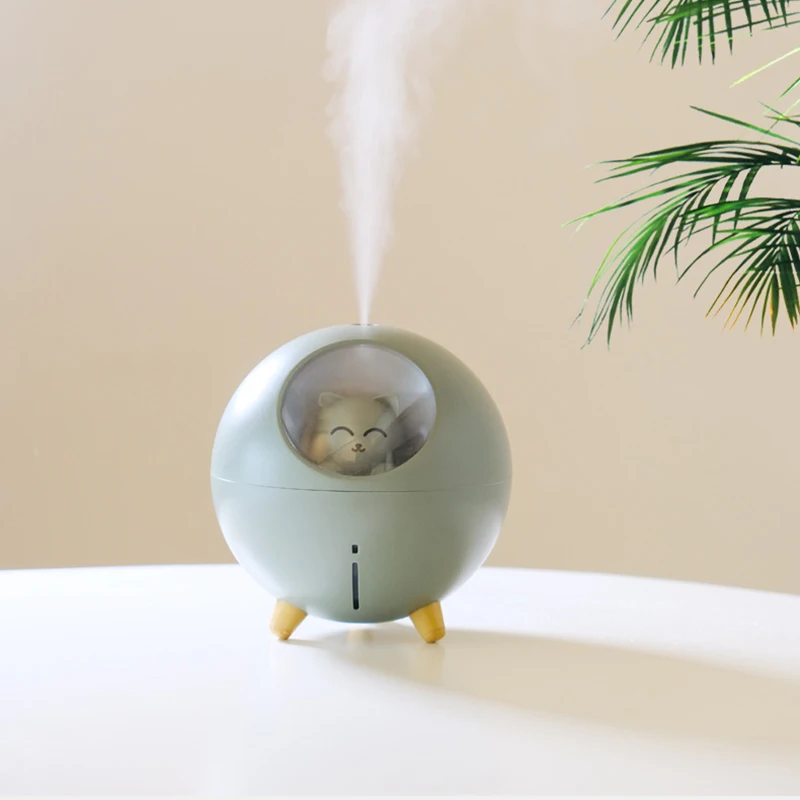 Название продукта: 220 мл увлажнитель воздуха Planet CatМатериал: АБС + силикон + ППРезервуар для воды: 220 млРазмер: 110*110*113 ммЦвет: белый/розовый/зеленыйМощность: 1,75 WНапряжение: DC5VВыход тумана: 30-35 мл/ч