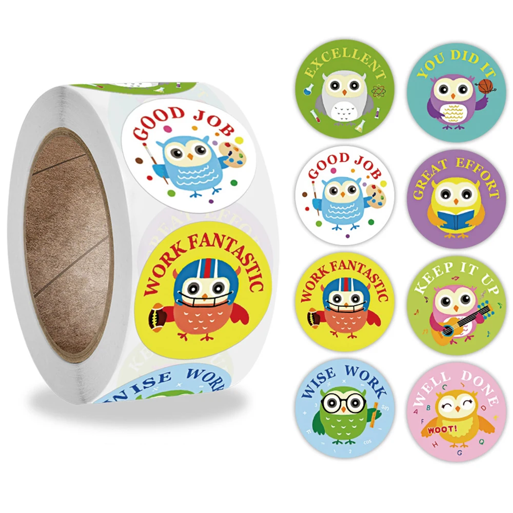 500 шт.рулон, животные, Мультяшные наклейки для детей, игрушки, различные милые совы, дизайн, узор, Школьный преподаватель, награда, наклейки, подарки для детей