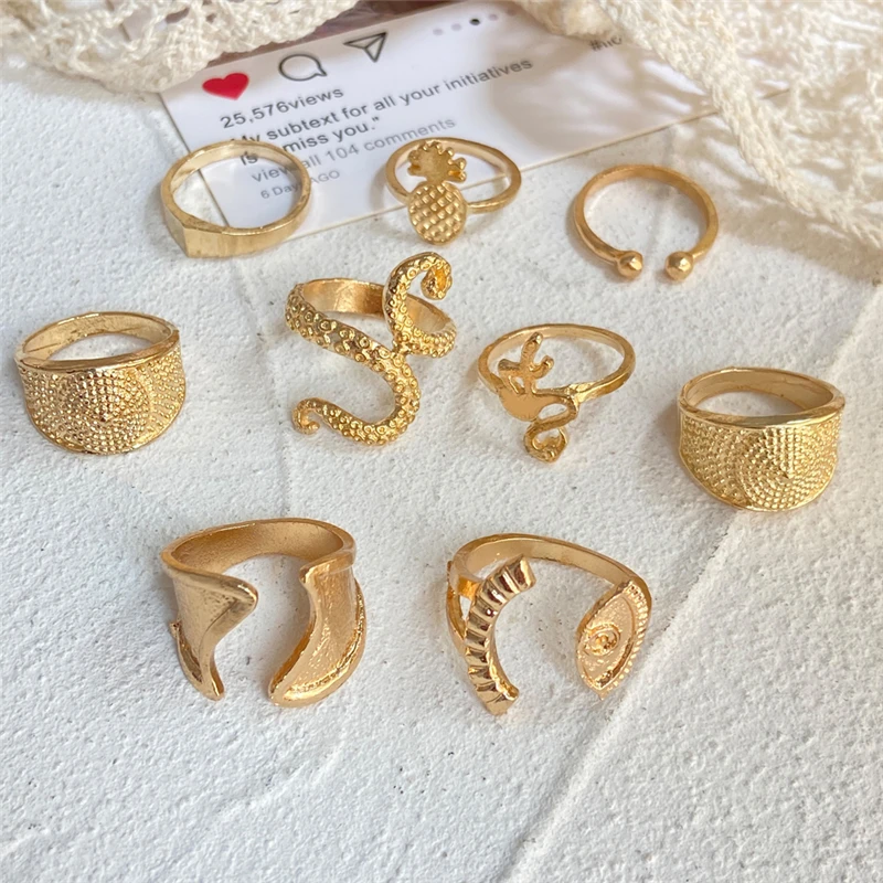 Набор широких колец 17KM для мужчин и женщин, модное богемное Золотое кольцо с животным, с ананасом, для суставов пальцев, ювелирные кольца подарочные