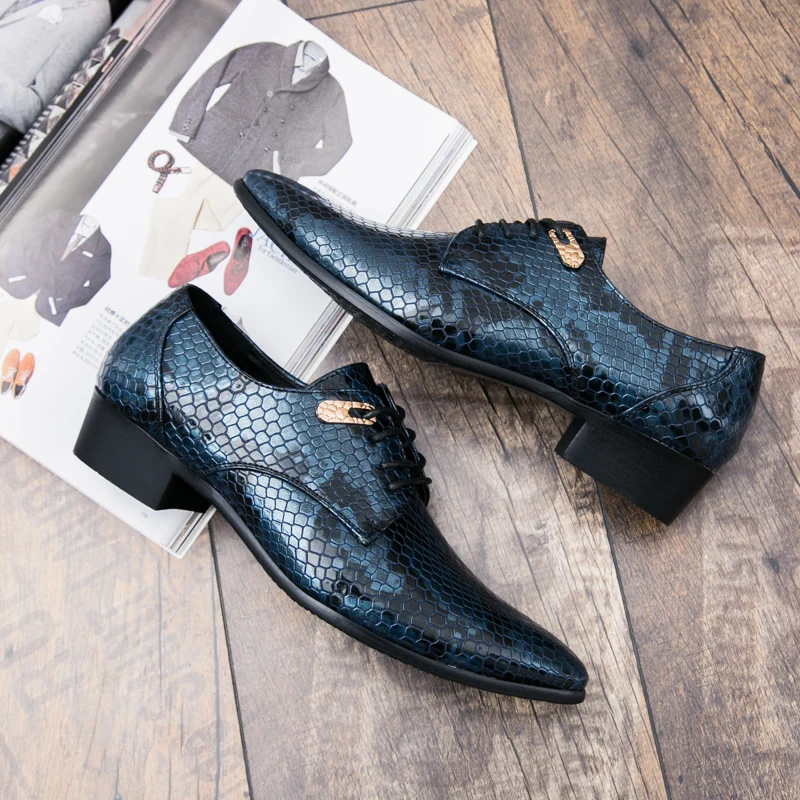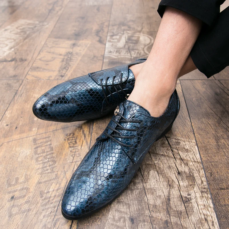 Туфли мужские кожаные, Классические оксфорды, заостренный носок, змеиная кожа, узор, деловые, офисные, для вечерние