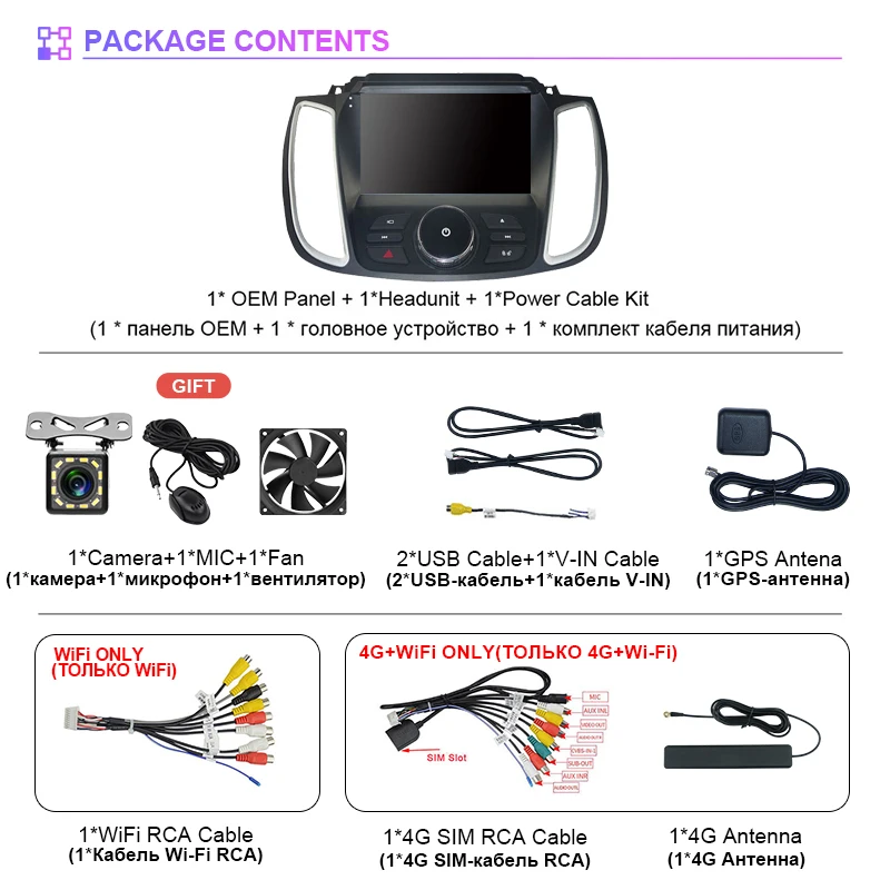 Rear View Camera/Front Camera/DVR/DAB+/OBD/TPMS/DTVSupport