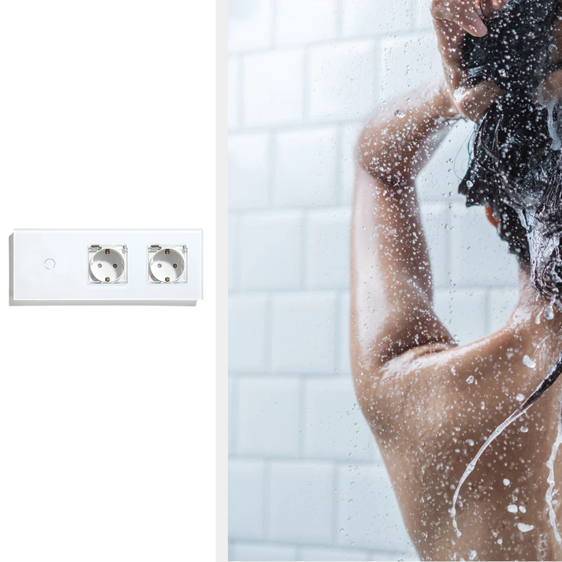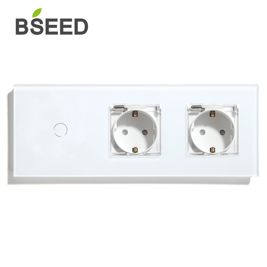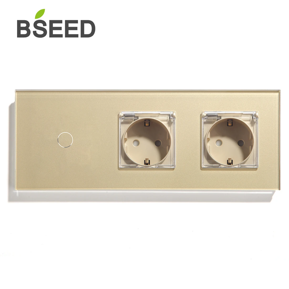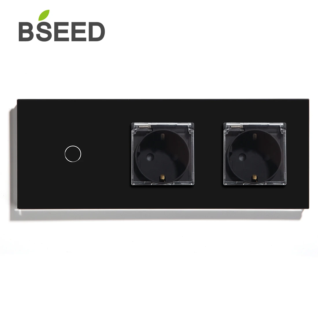 BSEED Водонепроницаемая двойная настенная розетка стандарта ЕС переключатель 1 банда 1 способ 2 переключатель 3 цвета Хрустальная стеклянная панель сенсорный переключатель вилки