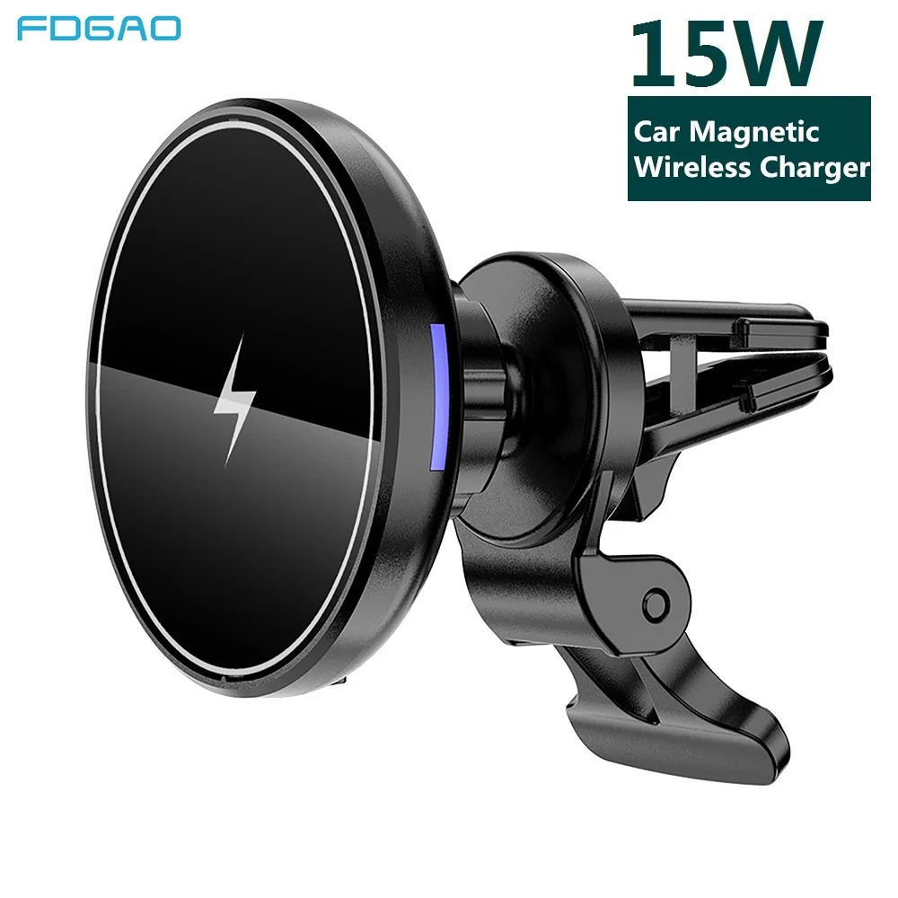 Автомобильное зарядное устройство FDGAO, магнитное, 15 Вт, быстрая Индукционная зарядка, крепление на вентиляционное отверстие, автомобильный держатель для телефона для iPhone 12 Pro Max Mini