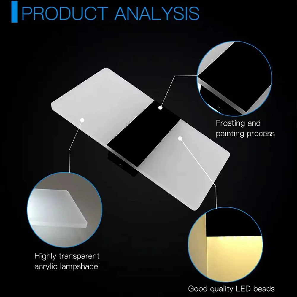 Настенный светильник акриловый в современном дизайне украшения с теплым белым светильник Том может создать комфортную и современную атмосферу жизни. Этот светодиодный настенный светильник изготовлен из держателя лампы и акрилового светильник вого корпуса, обладает высокой прозрачностью, без вспышки, мягким светильник Том, без окисления, прочный. Настенное/поверхностное крепление, установка без комплексной установки. Настенный Светильник изготовлен из акрила. Нержавеющий, устойчивый к коррозии, низкий уровень потребления, энергосберегающий, экологически чистый и прочный. Низкое энергопотребление и энергосбережение, идеально подходит для гостиной, спальни, ванной комнаты, коридора, балкона, лестницы, дорожки, патио и так далее.