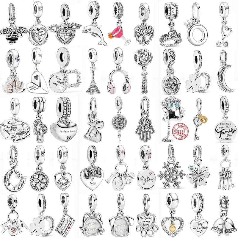 Новинка 925 серебряные подвески сердце Корона Обезьяна Слон ключ подходят для оригинального браслета Pandora женские самодельные Аутентичные бусины ювелирные изделия подарок