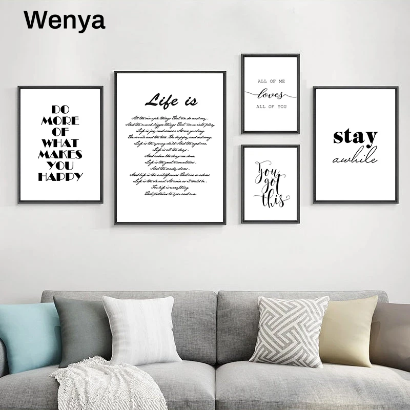 Минималистский черно-белые художественная стена с цитатой холст для...