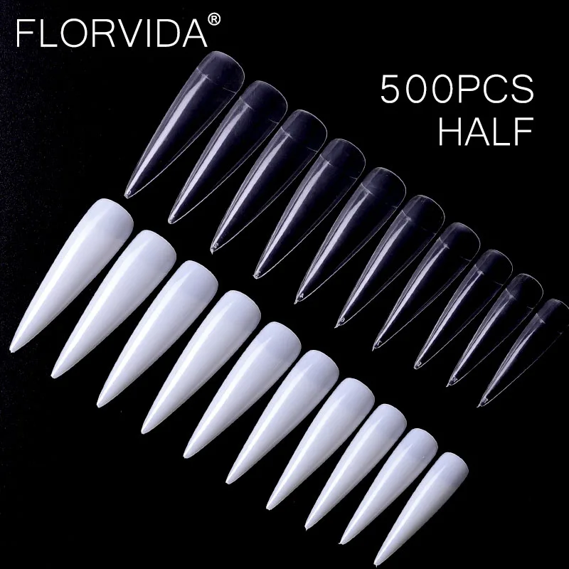 Набор накладных ногтей FlorVida, 500 шт., полуобложка, супер длинные острые капсульные накладные ногти, прозрачный набор для маникюра, естественный цвет