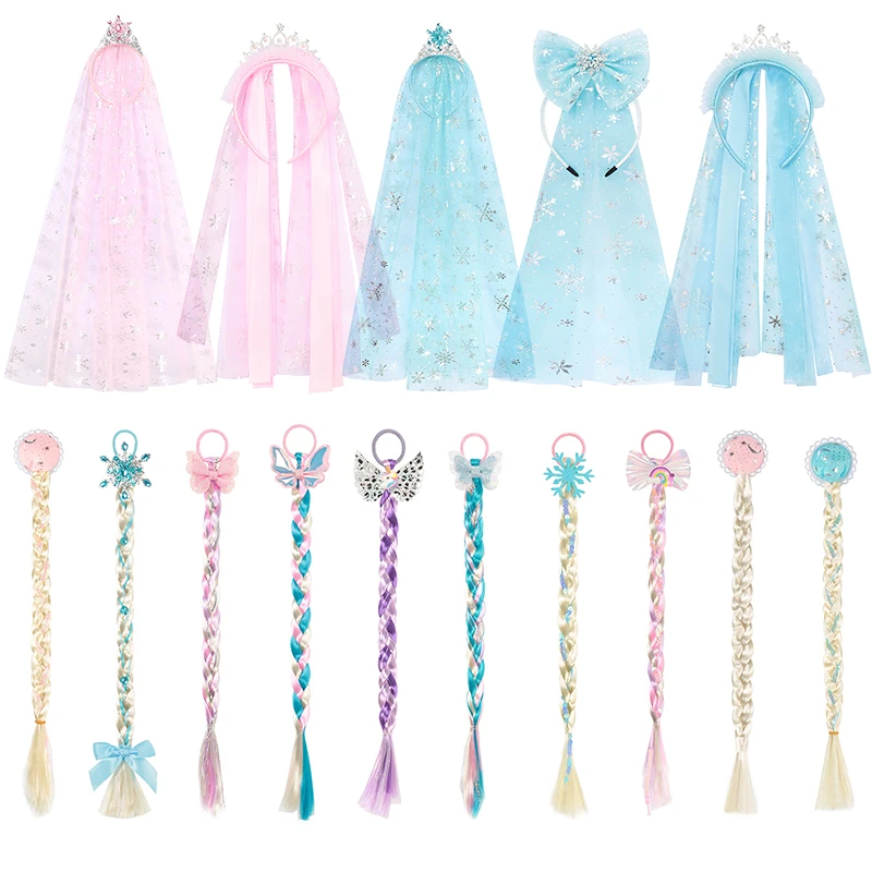 2021 аксессуары для волос принцессы для девочек, Детский комплект с короной Эльзы и Анны, Золушки, парик, коса для детей, для девочек, косплей, Аврора, Русалка, единорог
