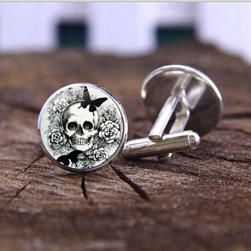 Винтажные запонки скелет для мужчин, дизайнерские круглые стеклянные запонки, модные мужские запонки для рубашки, пуговицы, ювелирные изделия, подарок