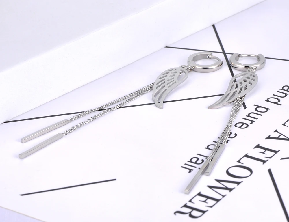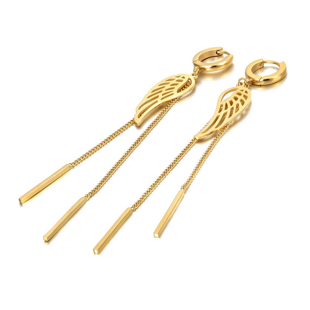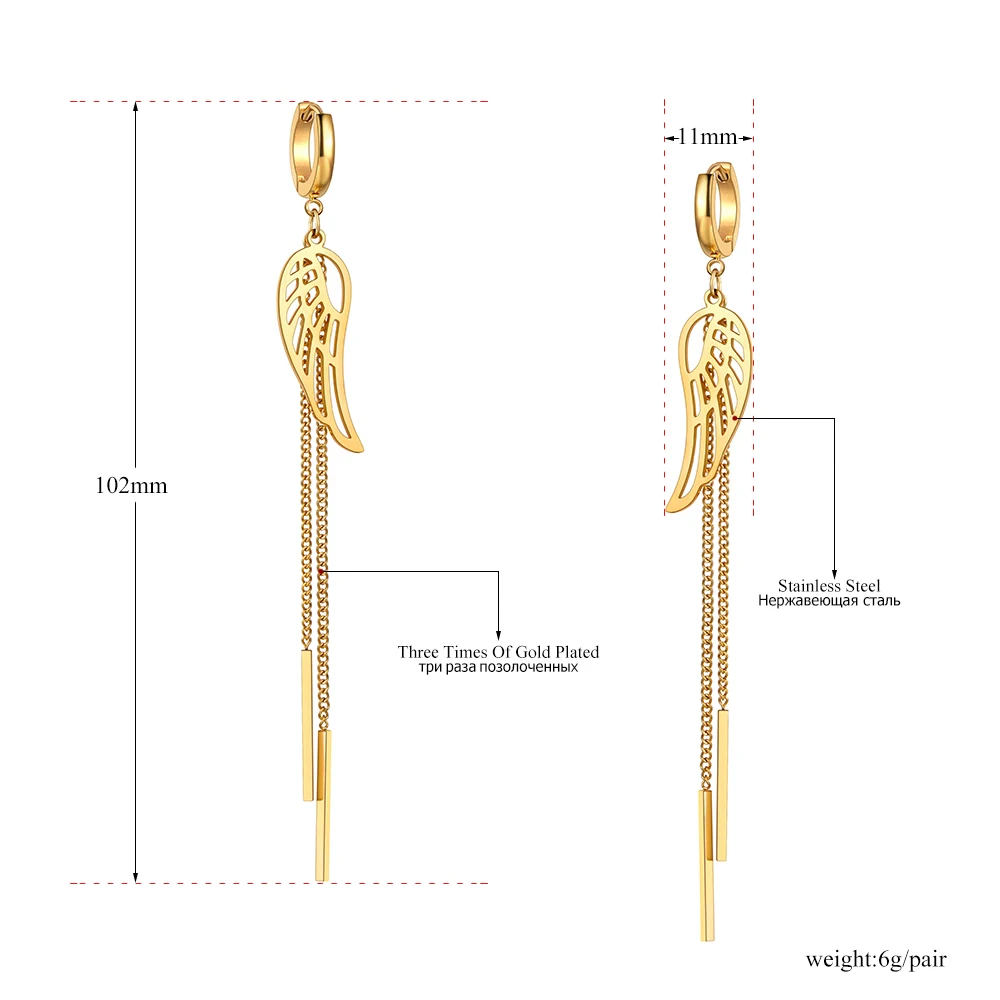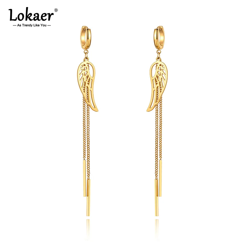 Женские длинные серьги Lokaer в богемном стиле, модные серьги-кольца из нержавеющей стали с крыльями для женщин и девушек, украшение, E21057