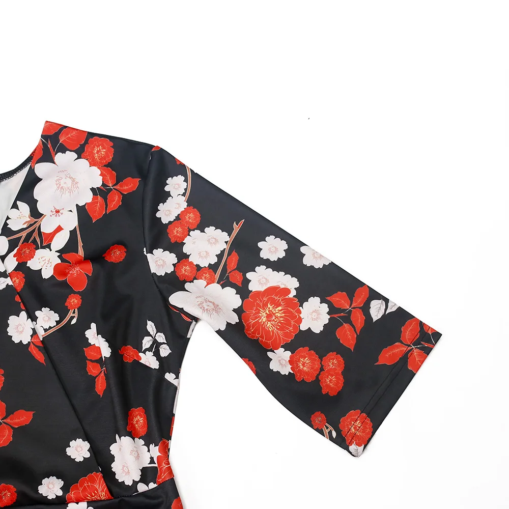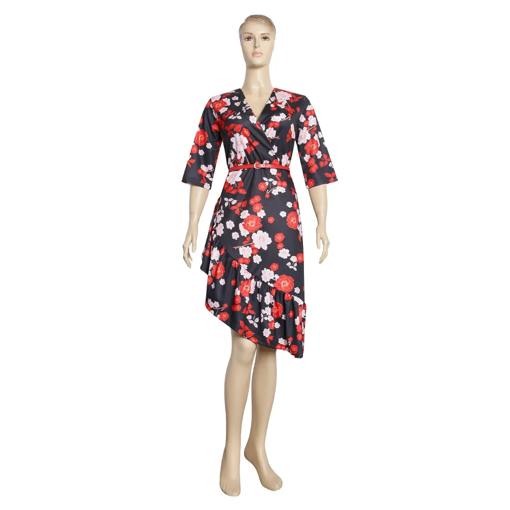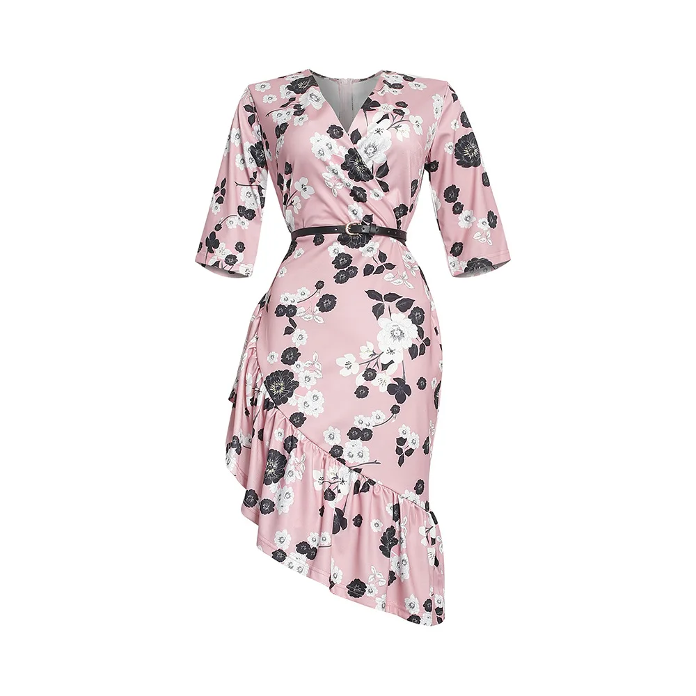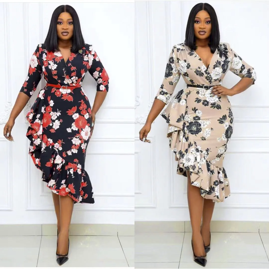 Женское осеннее платье женские 2021 Весенняя Повседневная тонкая деловая модельная обувь в стиле ретро; Элегантная обувь с v-образным вырезом с высокой талией печатных 34 рукава вечерние платья