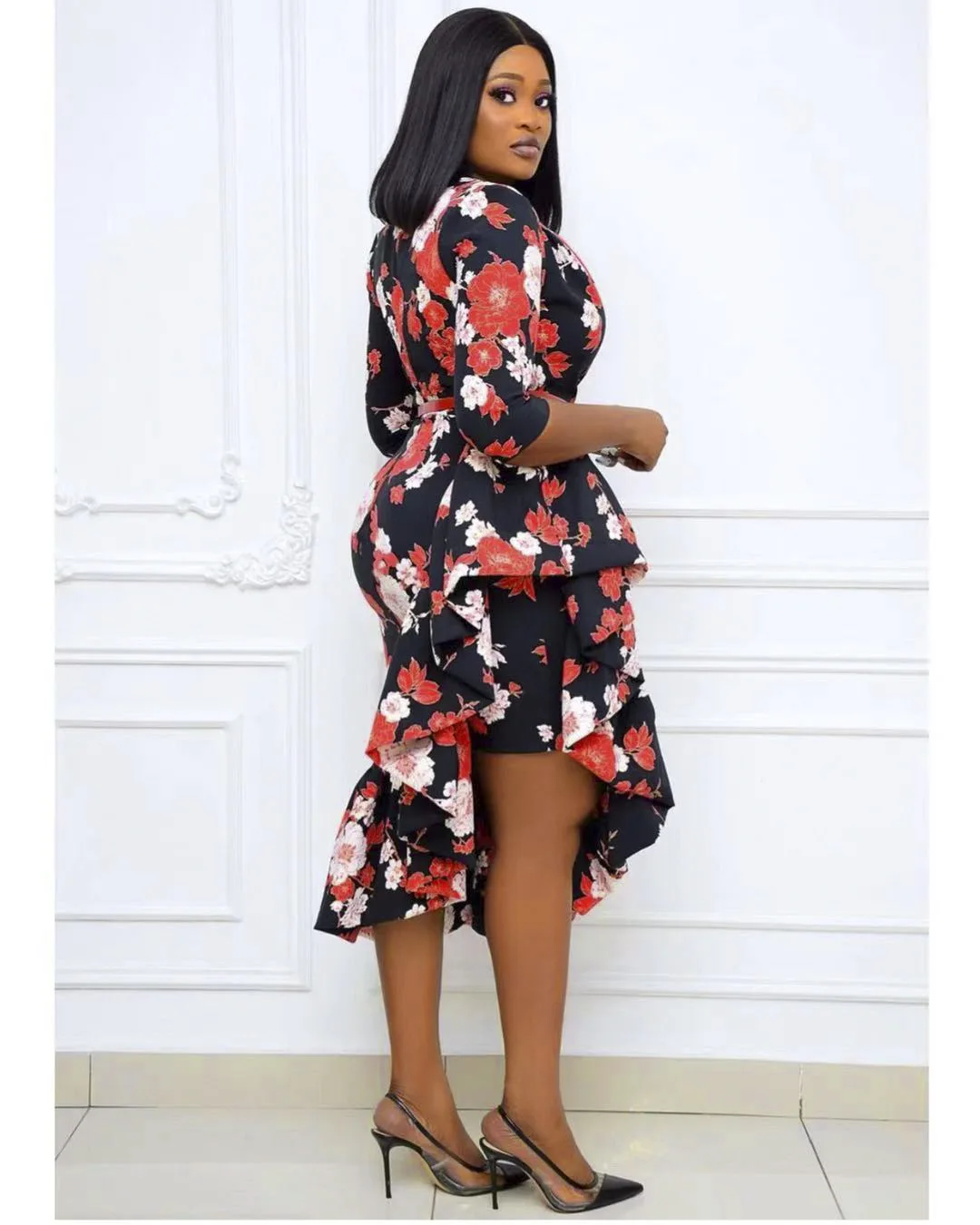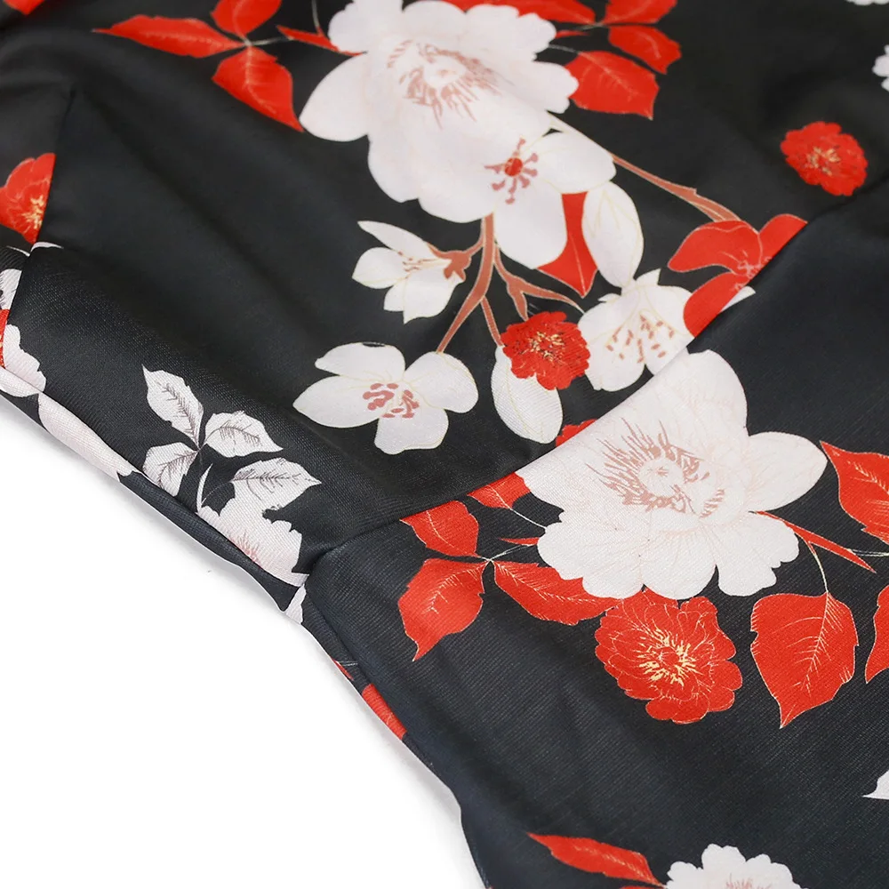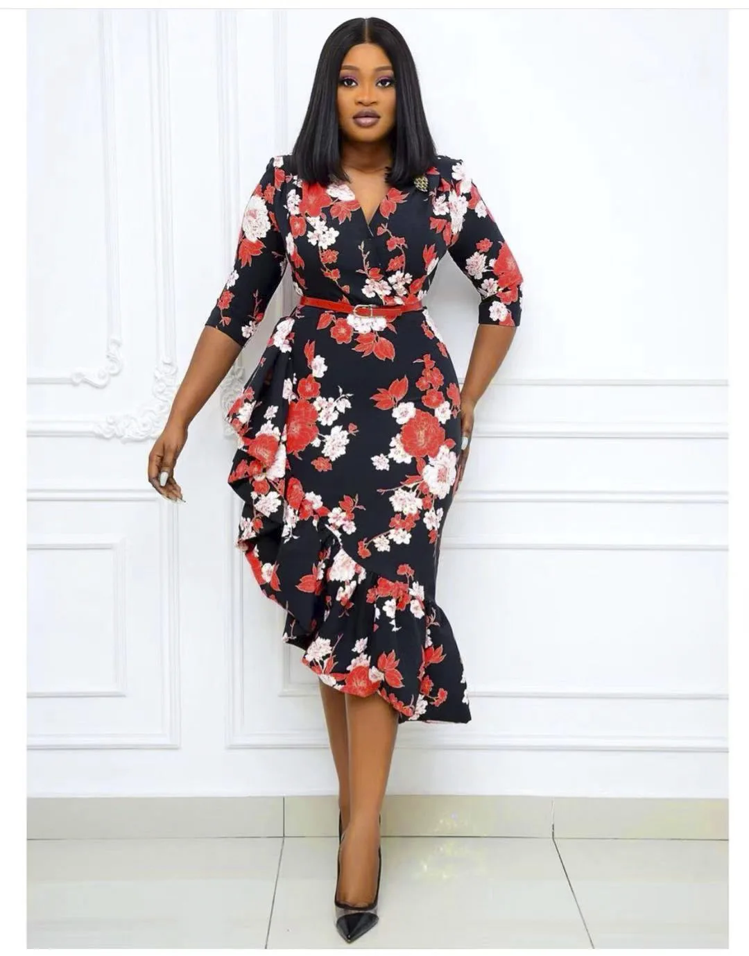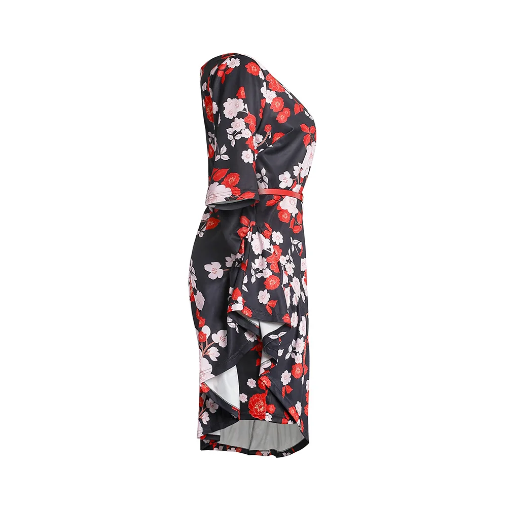 Женское осеннее платье женские 2021 Весенняя Повседневная тонкая деловая модельная обувь в стиле ретро; Элегантная обувь с v-образным вырезом с высокой талией печатных 34 рукава вечерние платья