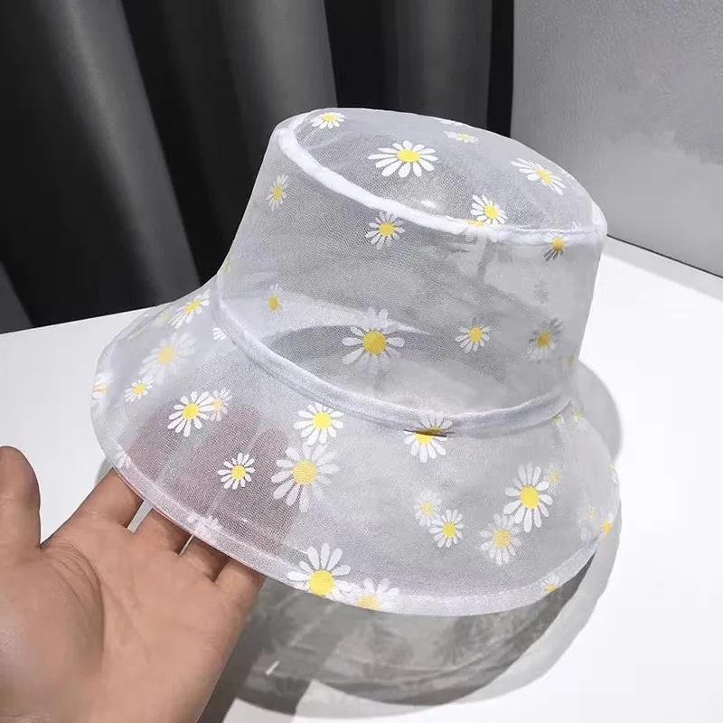 Кепка от солнца с маргаритками женская, Панама с вышивкой, Прозрачная Кружевная пляжная Панама с цветами, модная бейсболка с высоким верхом