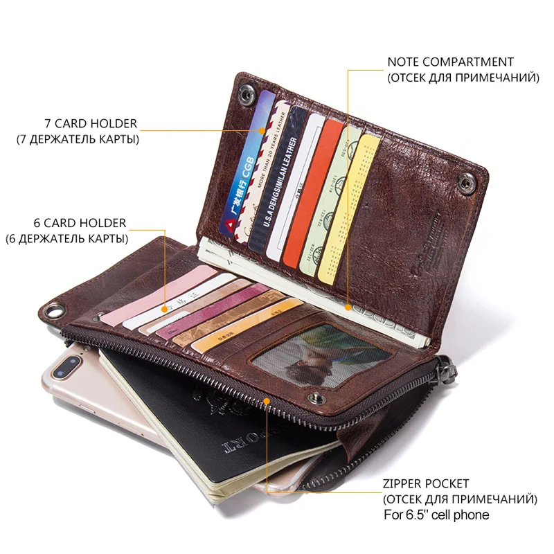 Мужской кошелек CONTACT'S из натуральной кожи, мужской клатч, брендовый роскошный мужской кошелек с отделением для монет на молнии, с отделением для телефона 6,5 дюйма