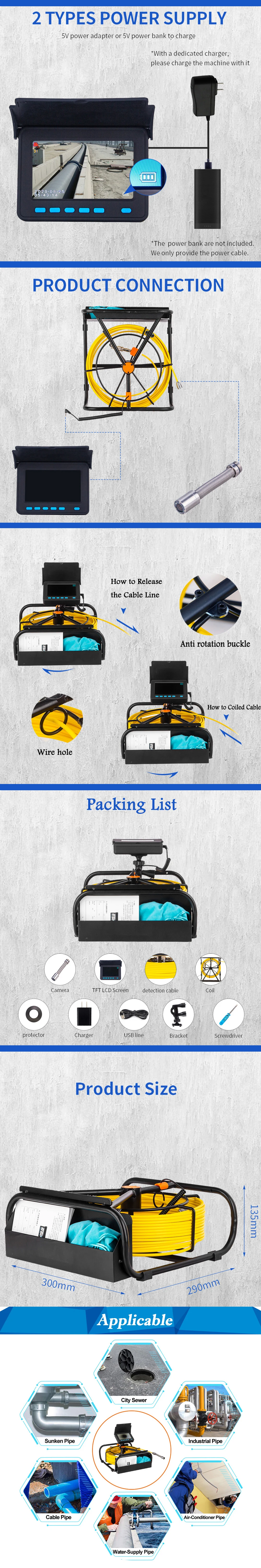 Это система для инспекции труб для профессиональной и повседневной работы. Она используется для проверки трубопроводов, канализационных труб, колодцев, воздуховодов HVAC, инспекции Общего здания и многого другого.