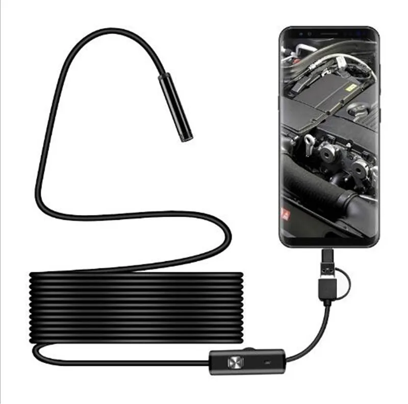 Эндоскоп 7 мм HD 2 м 5 м 10 м USB Android 2 в 1 адаптер камера эндо...