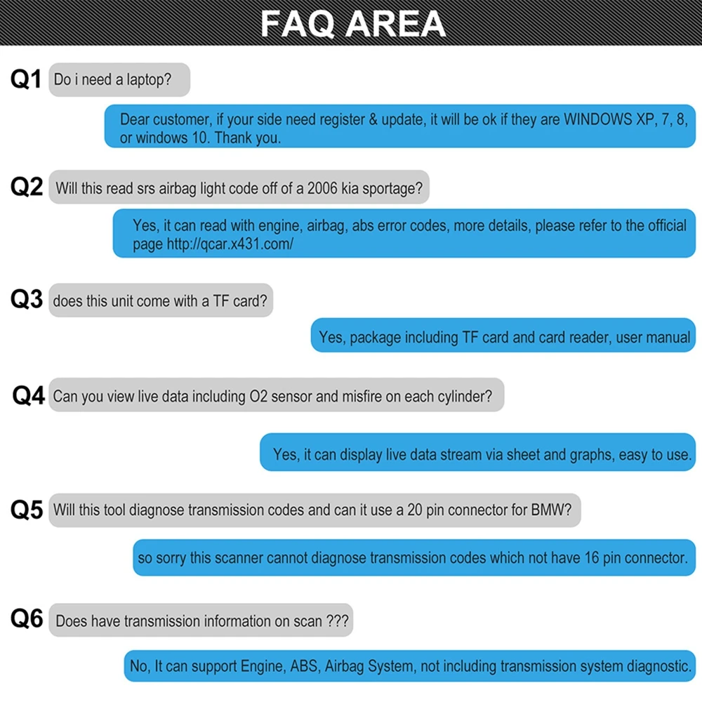 Несмотря на то, что он совместим с большинством автомобилей, но различные регионы поддерживают протокол OBD2 транспортного средства в разное время, или некоторые машины имеют специальный дизайн, поэтому он может не совместим с некоторыми автомобилями, которые не поддерживают протокол OBD2. Особенно японский и корейский автомобильный бренд. И это устройство имеет только функции OBD2, не имеют специальных функций, таких как сброс ABS, сброс подушки безопасности... Пожалуйста, оставьте нам сообщение в формате ниже, мы ответим Вам в течение 8 часов.Например: xx, 2005, 2.0cc, дизель