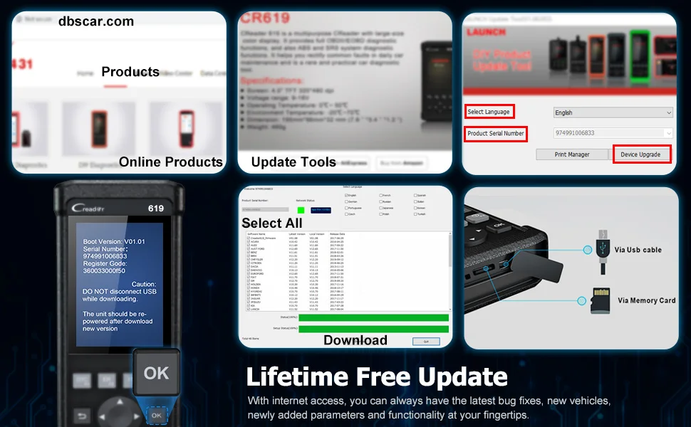 Launch CR619 автоматический Diangostic сканер инструмент поддерживает Пожизненное бесплатное обновление онлайн: