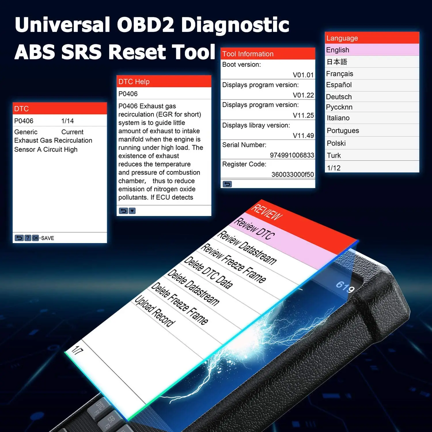 Launch CR619 Special Feature 1Airbag SRS System Scanner