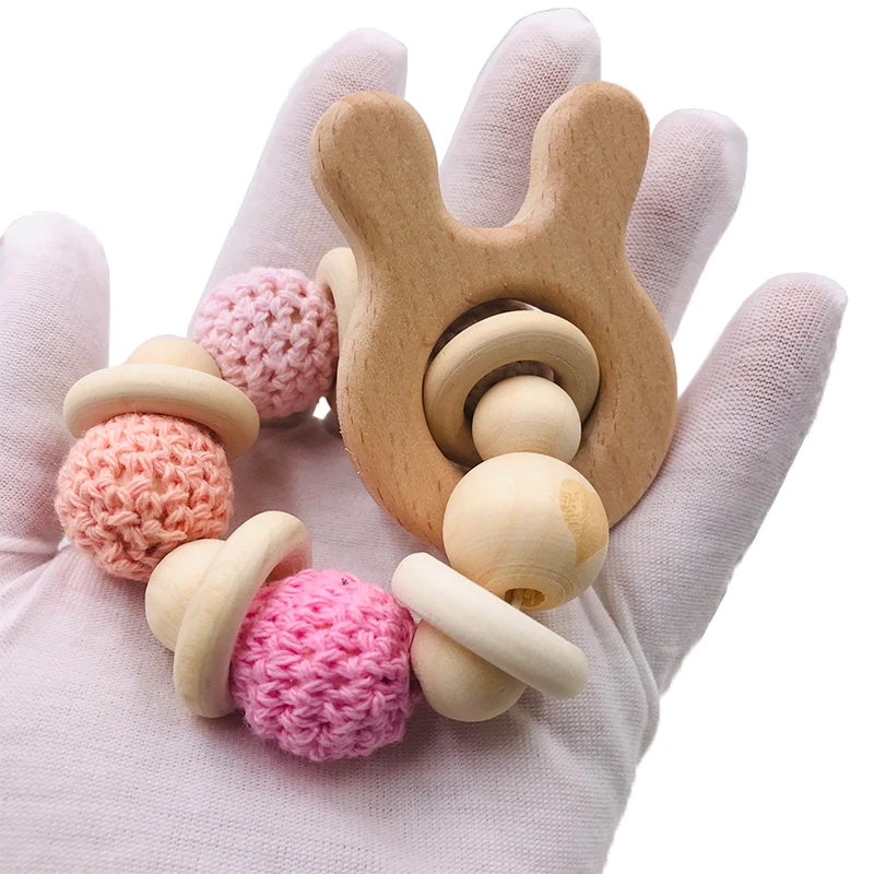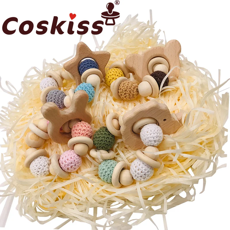 Coskiss, браслеты для ухода за ребенком, деревянный Прорезыватель для зубов, крючком, жевательные бусины, деревянные погремушки для прорезывания зубов, бриллиантовые браслеты