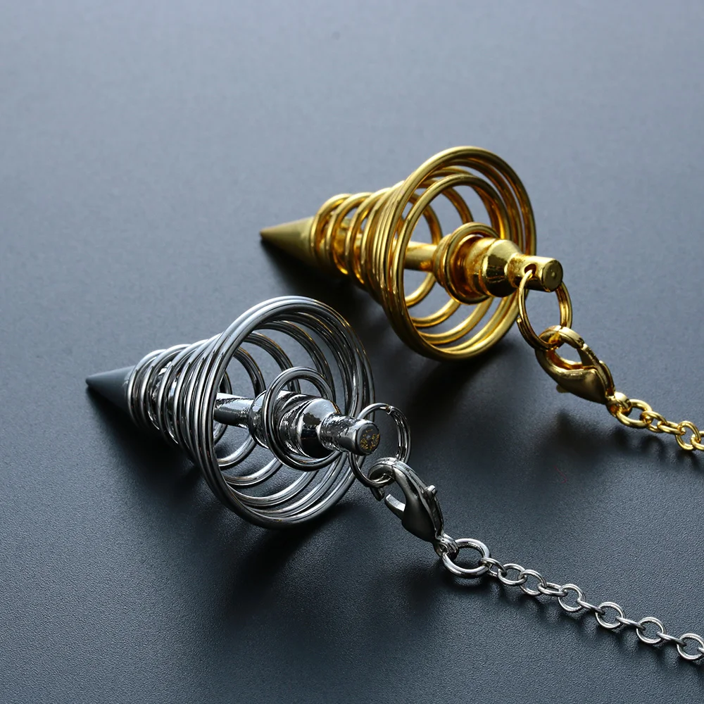 Металлический маятник, маятник радиестезия, подвесной Спиральный Конус, античный золотой серебряный цвет, пирамида