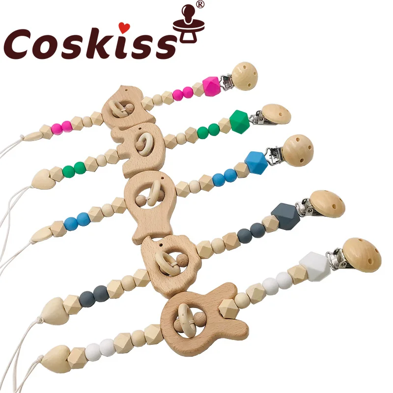 Coskiss, 1 шт., детский Прорезыватель для зубов из органического дерева, прорезыватель в виде животных, Натуральные Искусственные Силиконовые Бусины, Прорезыватель для зубов для малышей, подарок для новорожденных
