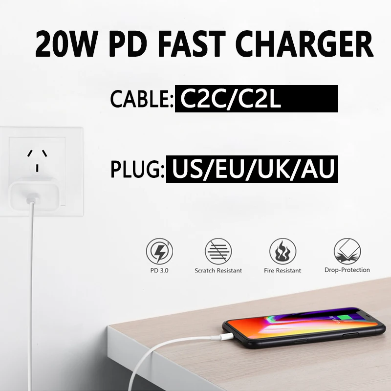 Зарядное устройство PD для компьютера, портативное быстрое и безопасное зарядное устройство с разъемом usb Type-c, 20 Вт, для Великобритании, США, Австралии, ЕС