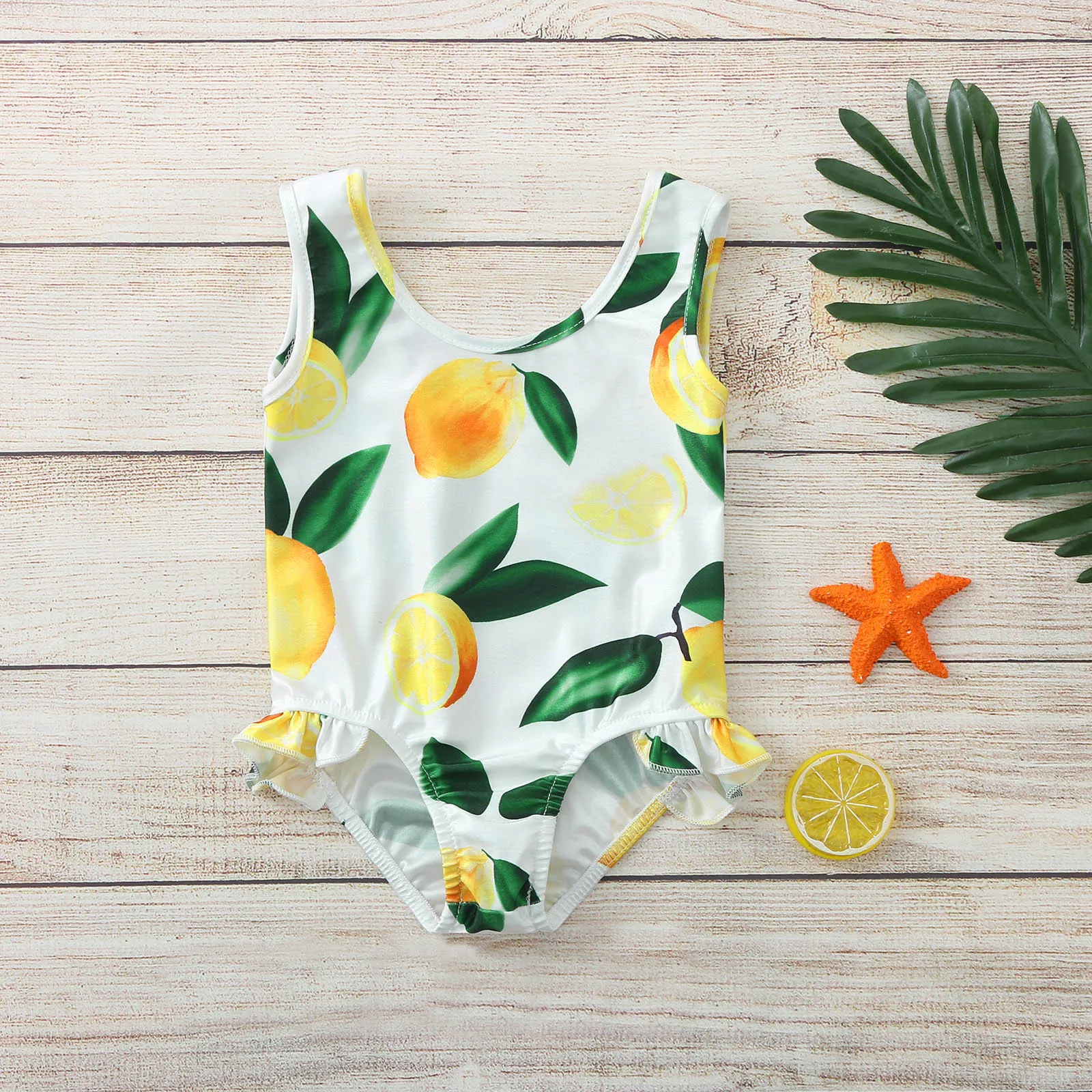 Детский комплект бикини для маленьких девочек, купальный костюм, Цельный купальник для маленьких девочек с принтом лимона и оборками, комплект детской одежды