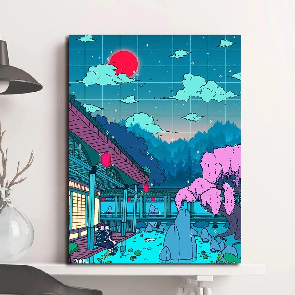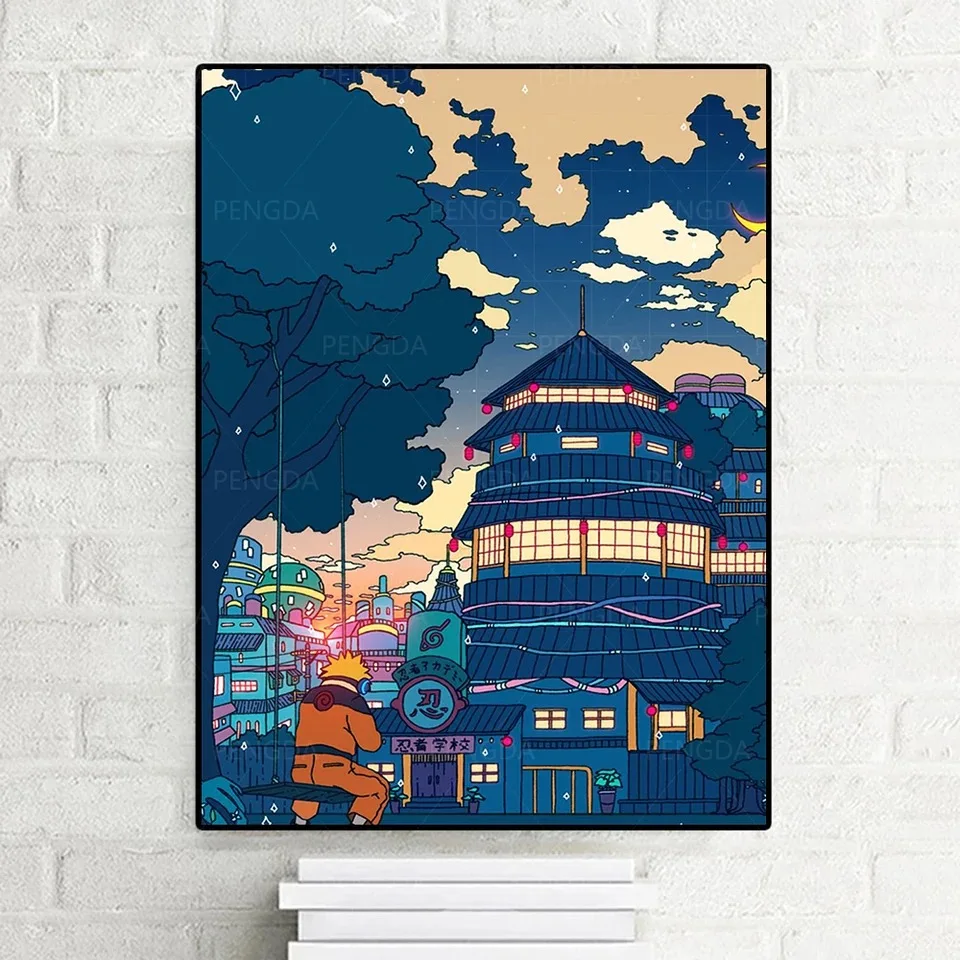 Холст Художественная настенная живопись HD мультфильм вид улица масляная живопись печать современный японский стиль домашний Декор ткань живопись