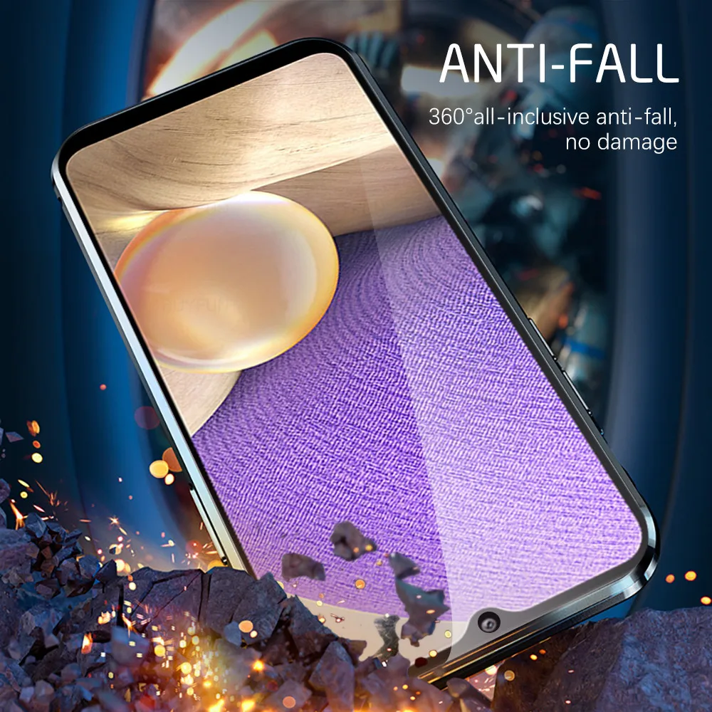 360 ° металлический бампер Адсорбция Магнитный откидной защитный чехол для samsung galaxy a32 a 32 2021 4g 5g двухсторонний стеклянный безопасный Чехол