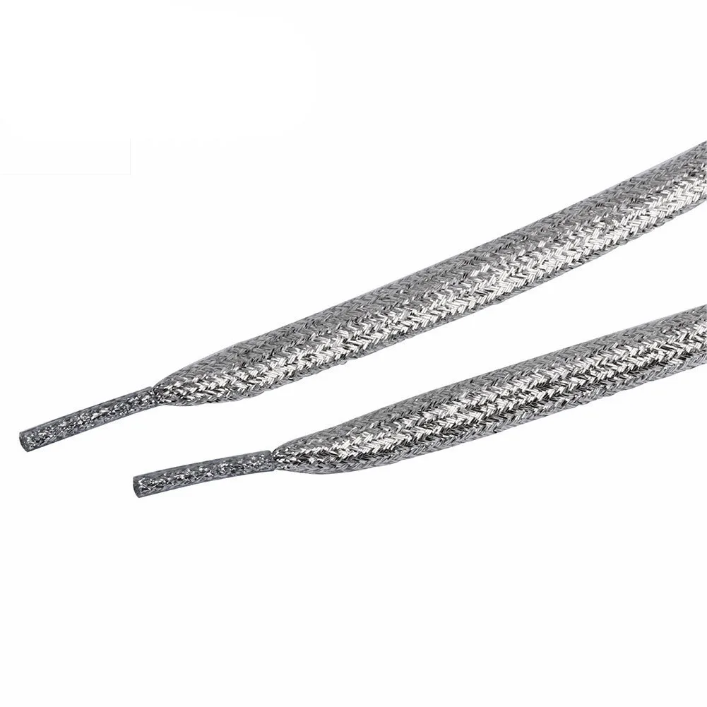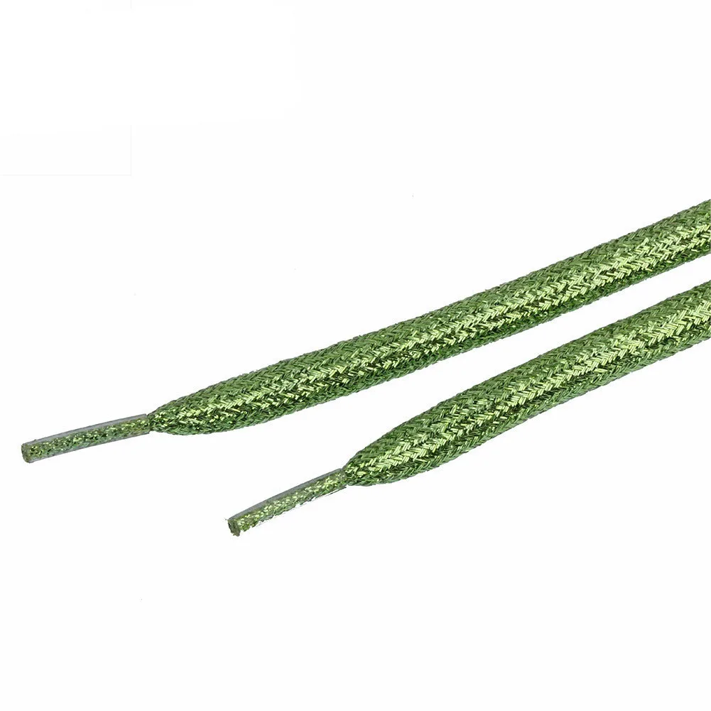 Блестящие шнурки из полиэстера, плоские металлические шнурки с металлической головкой, блестящие шнурки с металлическим блеском, Повседневная модная шнуровка для обуви, 1 пара шнурков для обуви