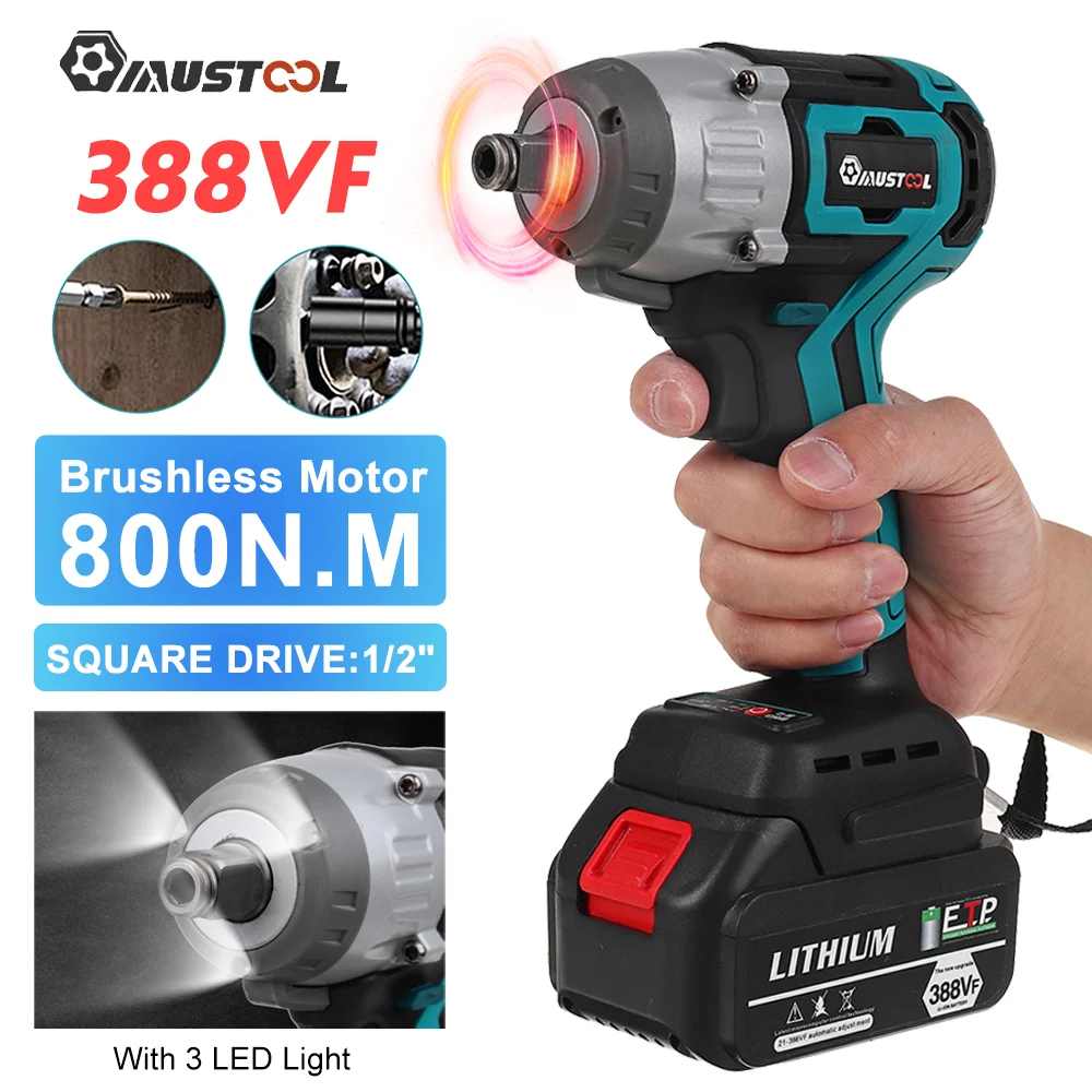 Электрический ударный гайковерт MUSTOOL 388VF, бесщеточный гайковерт 12, разъем беспроводной ключ, аккумуляторная отвертка для аккумулятора Makita 18 в