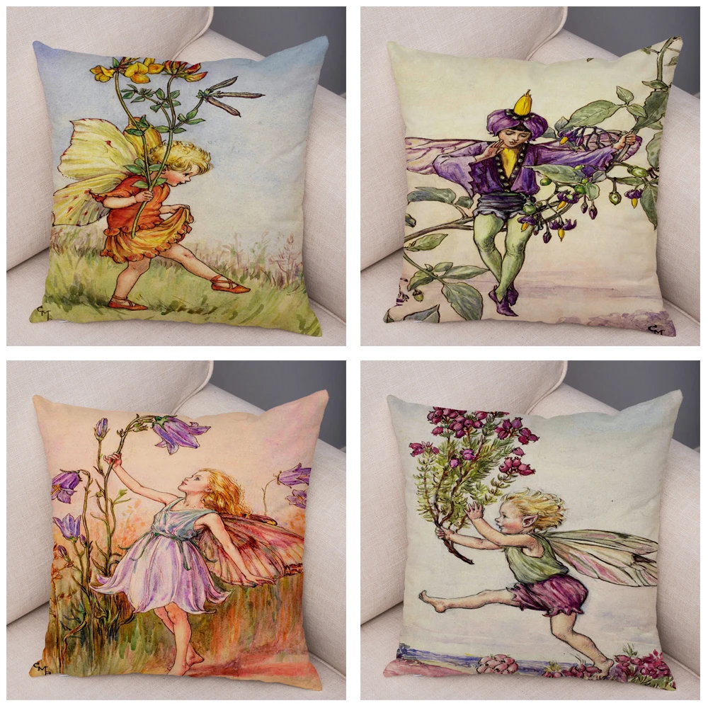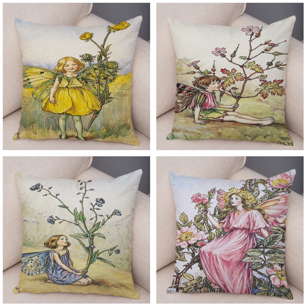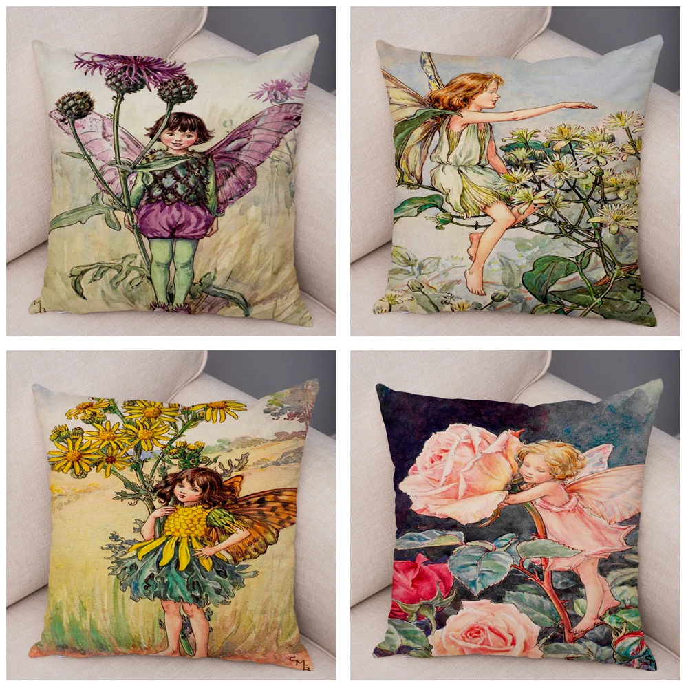 Наволочка для подушки с изображением сказочного мира эльфов, милый мультяшный цветок, для дивана, дома, наволочка из полиэстера, чехол