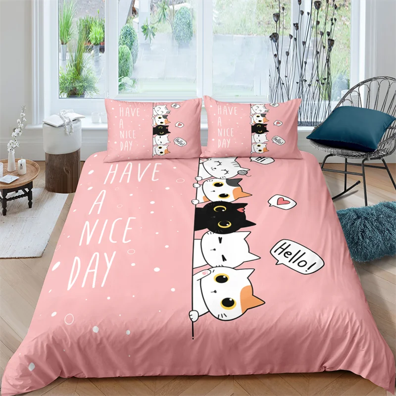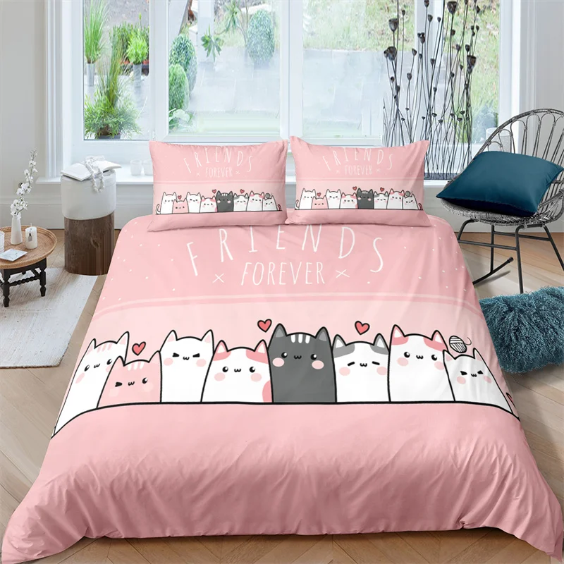 Комплект постельного белья для детей, с 3D-принтом в виде розовой кошки, Размеры ЕС, США, Австралии, Великобритании