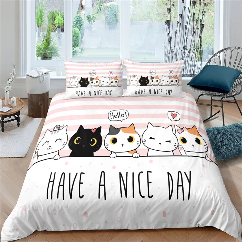 Комплект постельного белья с мультяшным изображением котенка, милый...