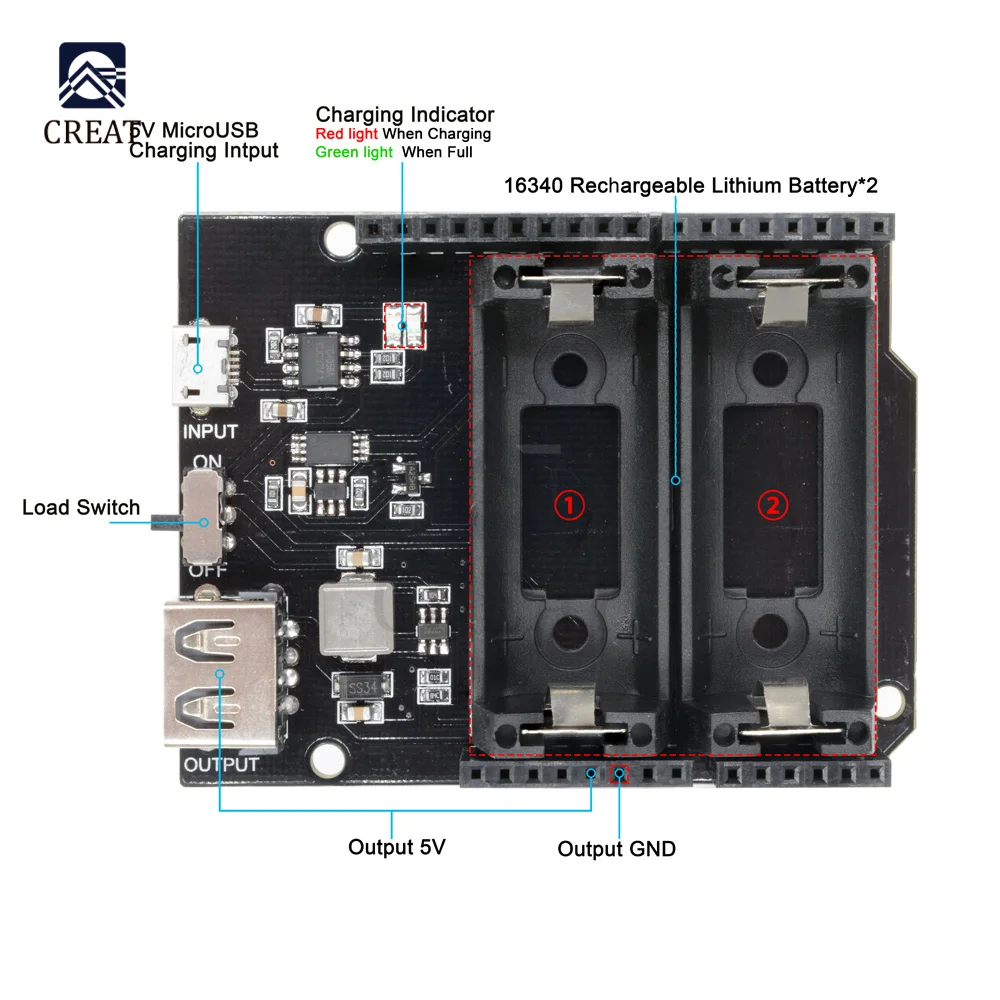 Двойной модуль внешнего аккумулятора ESP8266, ESP32, 1 шт., 16340, для Arduino R3 ONE