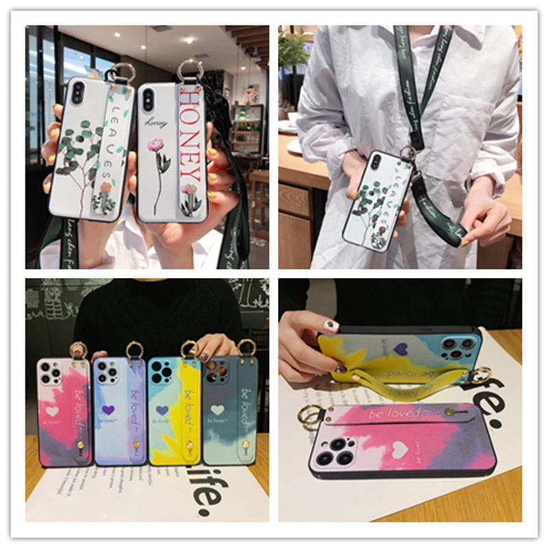 Модный градиентный чехол для телефона с ремешком на запястье для iP...
