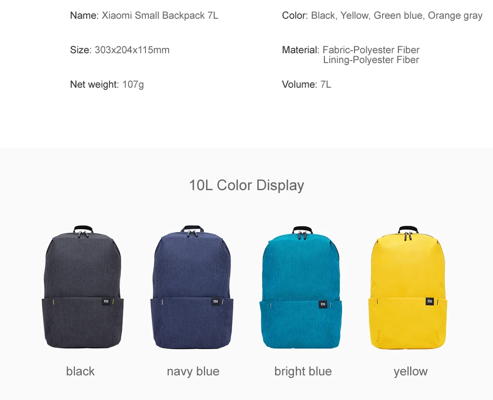 Рюкзак Xiaomi Mi, 7 л, 10 л, 15 л, 20 л, Повседневный, для путешествий, спортивный, многоцветный