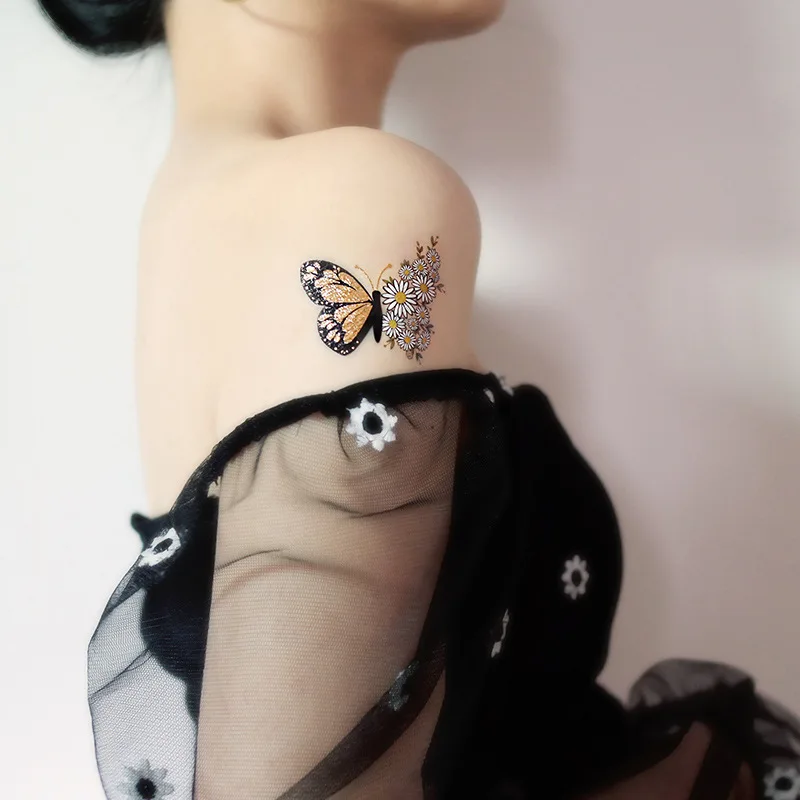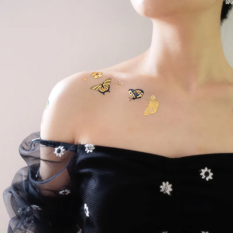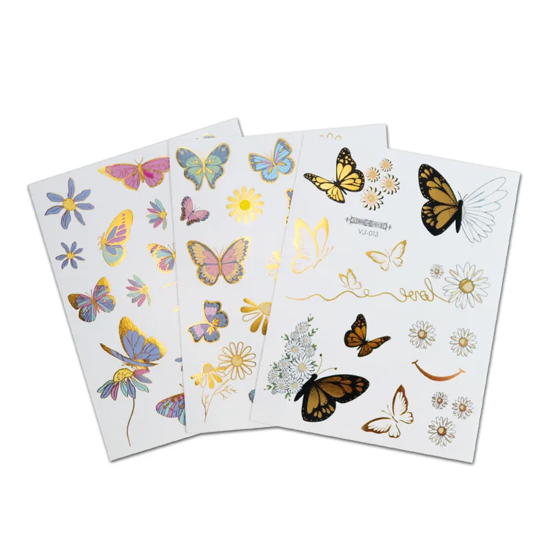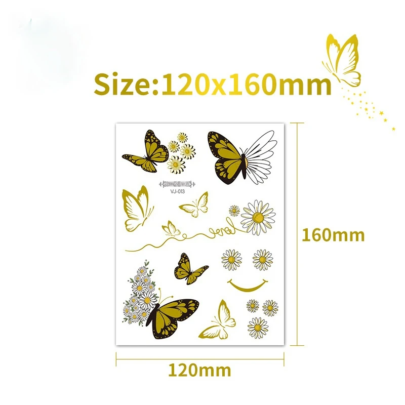 Цветная Золотая водостойкая временная татуировка, металлическая татуировка, наклейка, красивая бабочка, хна для боди Арта, тату, временная татуировка для женщин