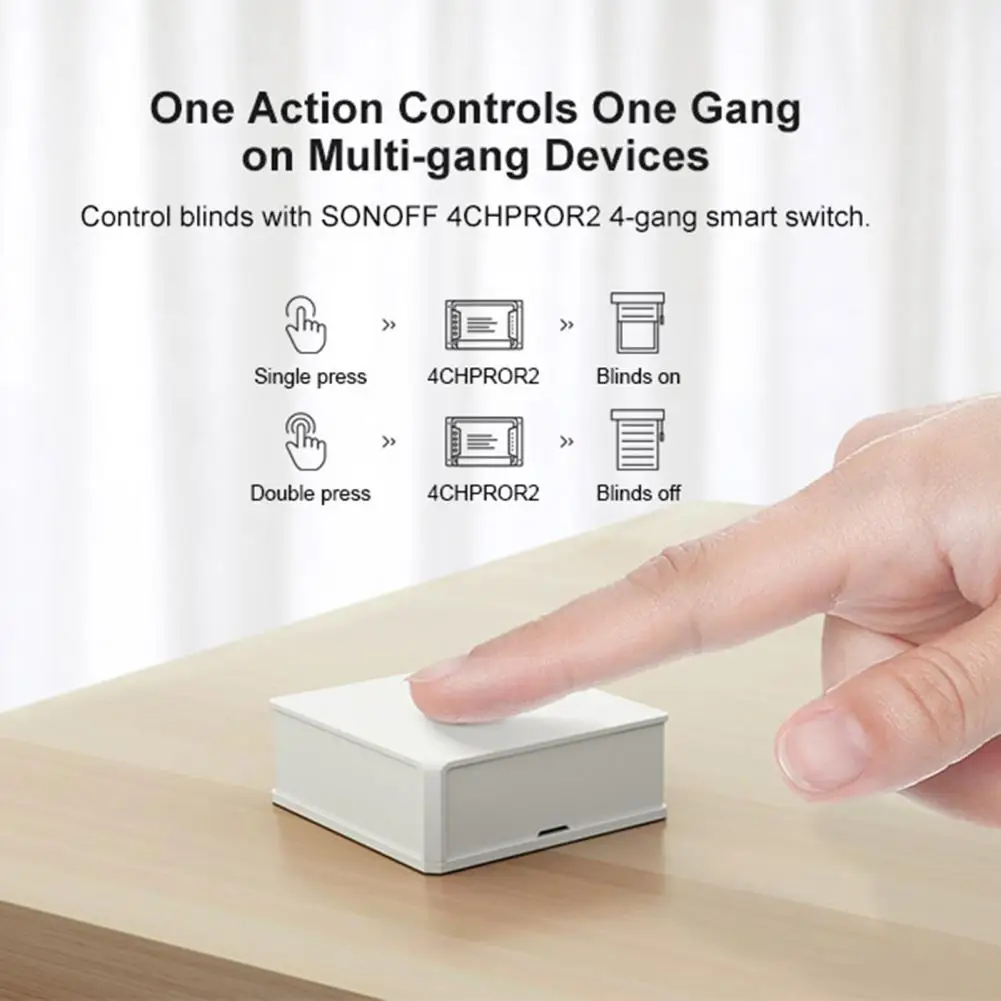 SNZB-01 беспроводной переключатель умный мини Zigbee E-WeLink приложение IFTTT Умный домашний переключатель для дома Описание: Кнопочный переключатель настраивается с тремя вариантами управления-одним, двойным нажатием и длительным нажатием, так что вы можете программировать процедуры и действия так просто, как вам нужно. Намного проще подключить его к нескольким подключенным устройствам, которыми вы хотите управлять, просто нажмите на приложение, чтобы соединить все устройства. Величие линий кнопок в его гибкой подвижности, вы можете стратегически разместить его или перемещать его вокруг вашего дома, где это будет наиболее полезно, затем создайте умную сцену, чтобы она работала для вас на основе различных действий кнопок, которые вы настроили. Двустороннее управление доступно даже для включения или выключения светильник.Кнопочный переключатель работает от батареи, что ваш мобильный телефон получит уведомление о низком заряде батареи, когда оставшийся уровень заряда батареи составляет менее 10%.Изготовлено из высококачественного поликарбоната, этот датчик имеет длительный срок службы и хорошую производительность.Его длина составляет 4,3 см, ширина 4,3 см, высота 1,6 см.Беспроводной коммутатор SNZB-01 Zigbee-это миниатюрный и изысканный смарт-коммутатор ZigBee, отвечающий на мост SONOFF ZigBee, который позволяет достичь цели связи между устройствами ZigBee и устройствами WiFi. Название товара: беспроводной переключательМатериал: ПоликарбонатБатареи: 3 в CR2450 кнопочный аккумулятор (батарея в комплект не входит)Рабочая температура: -10 градусов Цельсия-40 градусов ЦельсияРазмер: 4,3 см x 4,3 см x 2,6 см/1.69inx1.69inx1.02in Примечания:Благодаря светильник и экрана Цвет Товара может быть s светильник ly отличается из-за характеристик монитора компьютера. Возможны незначительные отклонения в размерах из-за различных измерений вручную. Посылка включает в себя:1 беспроводной переключатель
