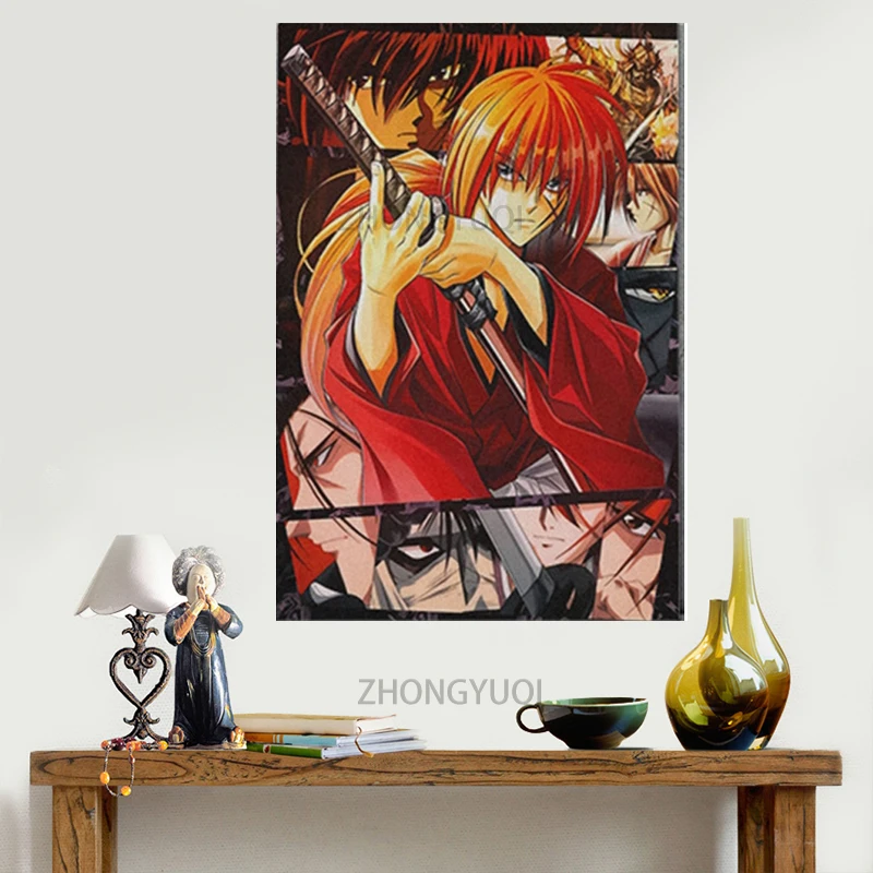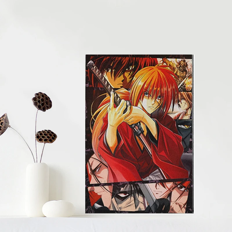 Плакат аниме Rurouni Kenshin Himura, деревянная рамка, холст, живопись, настенное искусство, декор для гостиной, кабинета, украшение в рамке, принты icon star icon star icon star icon star icon star
