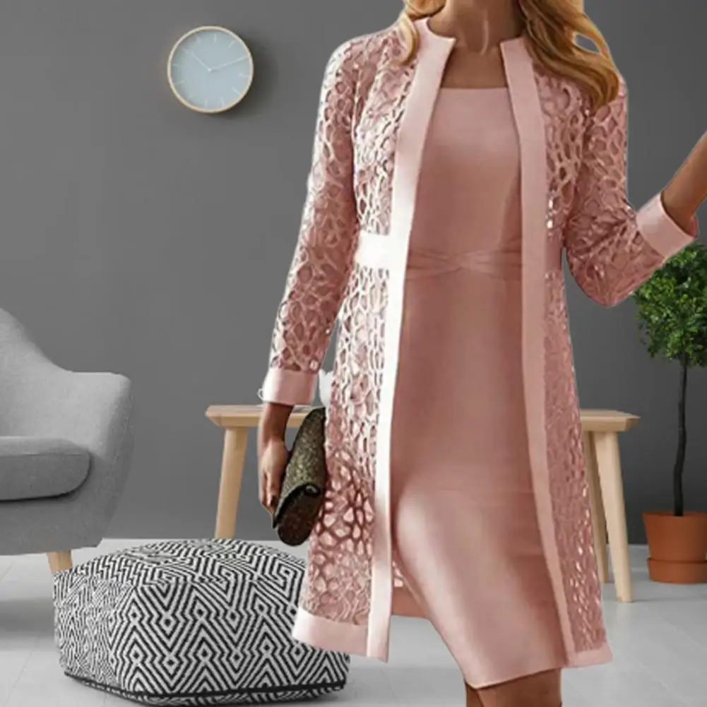 Женское Повседневное платье-кардиган SANWOOD, однотонное Облегающее кружевное платье до колена с длинным рукавом, весна-осень 2021