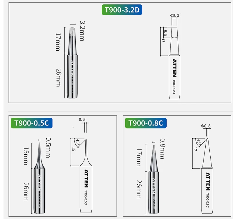 Оригинальный подлинный наконечник ATTEN T-900 для паяльной станции 936