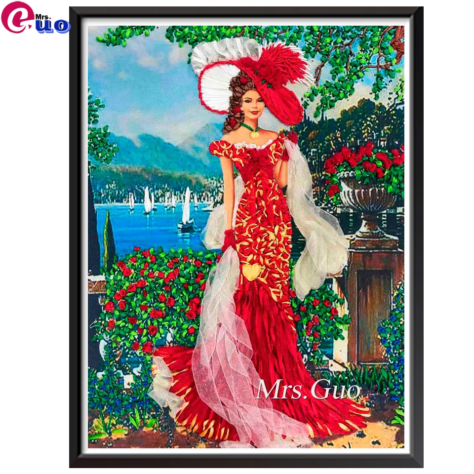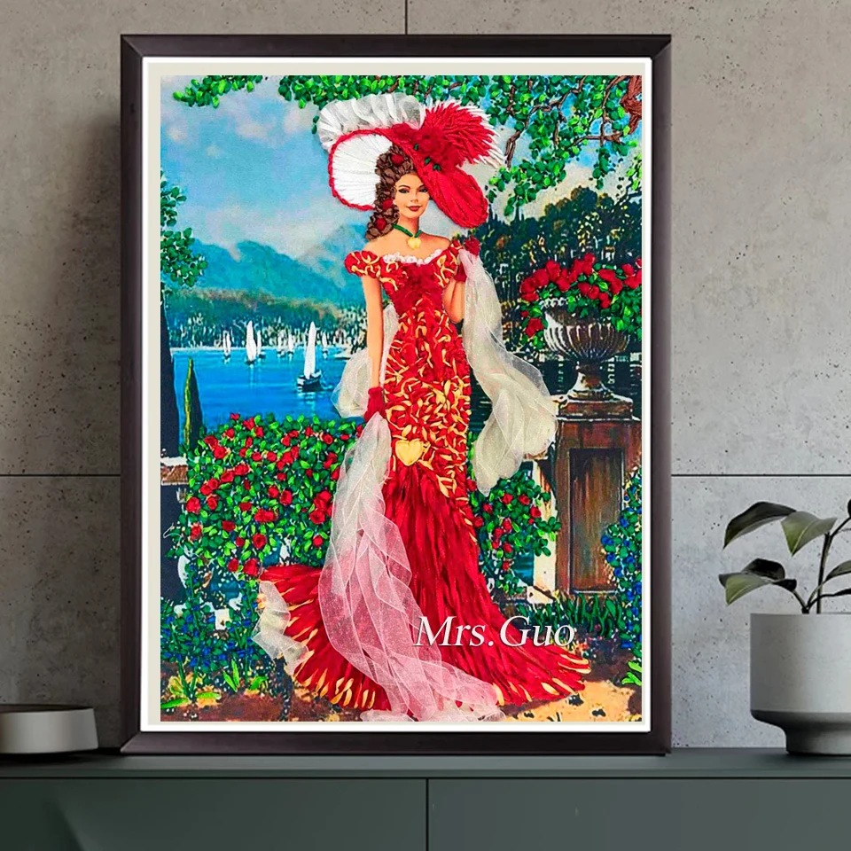 Алмазная картина Diy полностью круглая 5D красивое красное платье для женщин Алмазная вышивка крестиком Стразы Алмазная мозаика для девочек