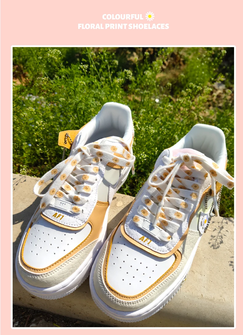 Новинка 2022, плоские шнурки для обуви с маленькими маргаритками, шнурки для кроссовок, шнурки для кроссовок с высоким берцем, аксессуары для обуви