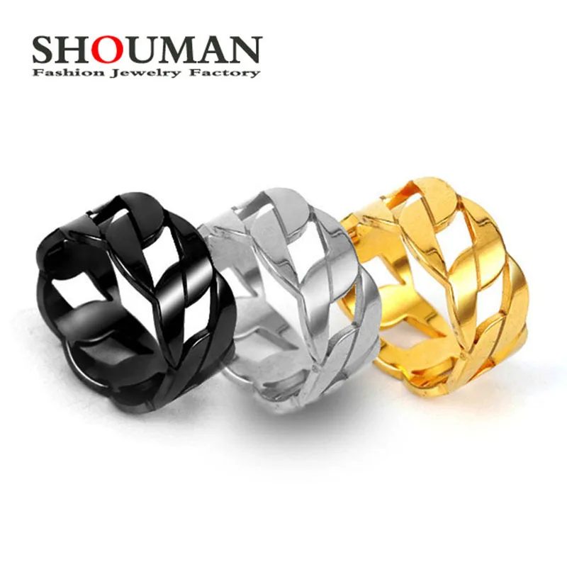 Крутое вечерние нее кольцо SHOUMAN в форме цепи из нержавеющей стали в стиле панк, черного и золотого цвета для мужчин и женщин, ювелирное украшение для братского мужского Союза