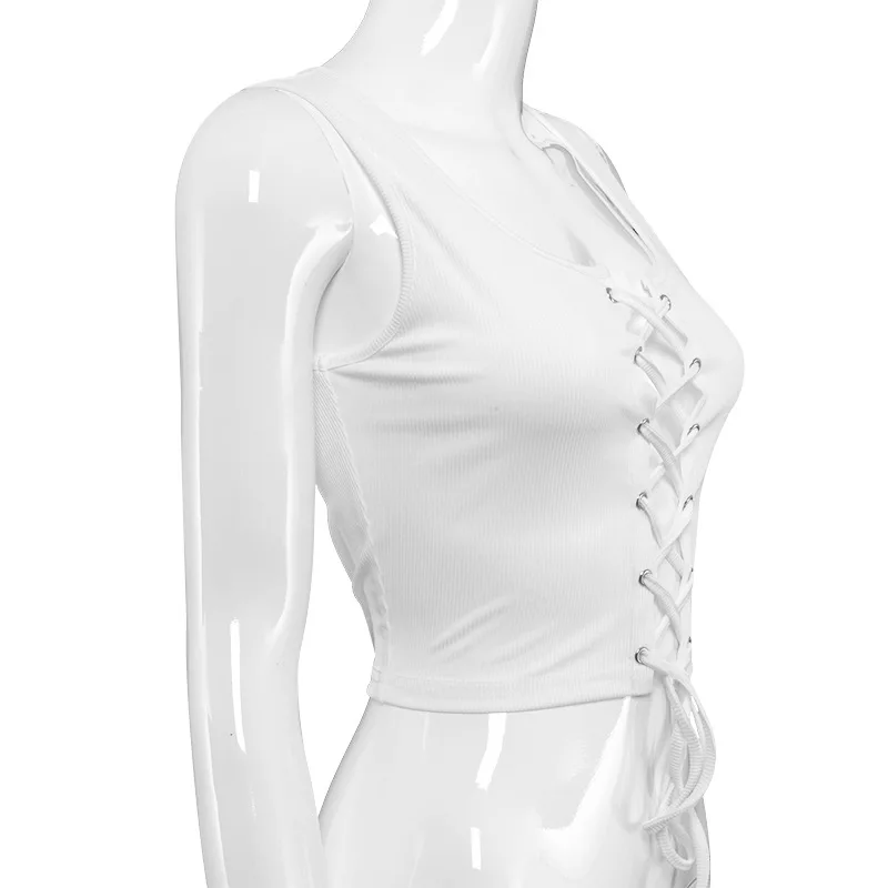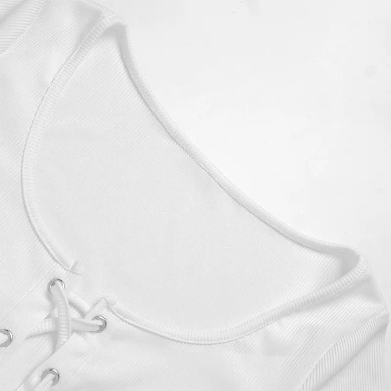 Женская футболка с вырезами на шнуровке, повседневный однотонный высокий уличный топ с глубоким вырезом, облегающий кроп-топ