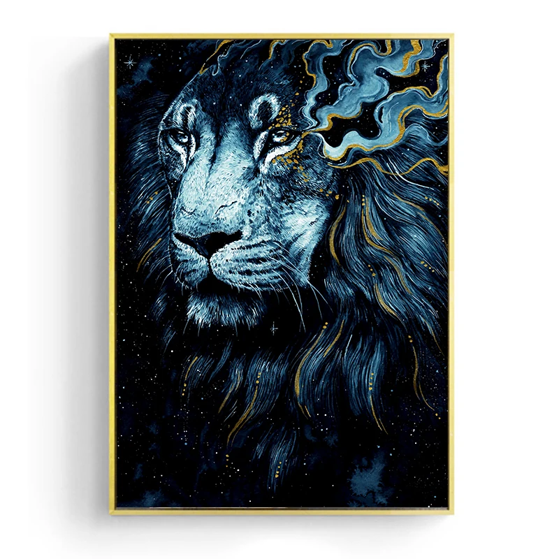 Плакаты с изображением Льва, тигра, животных, Современная синяя Зве...