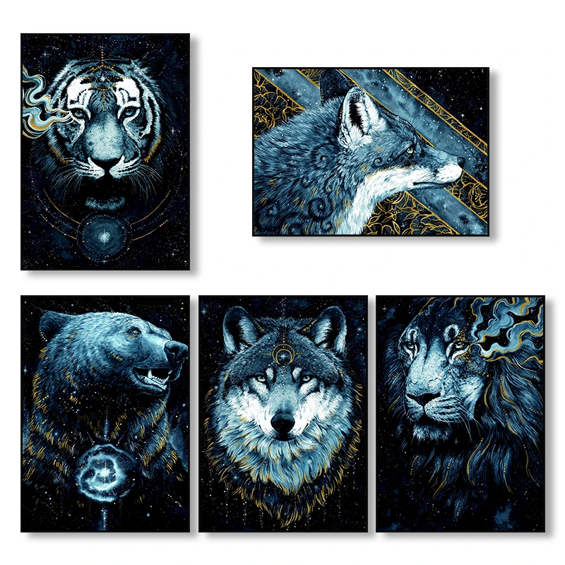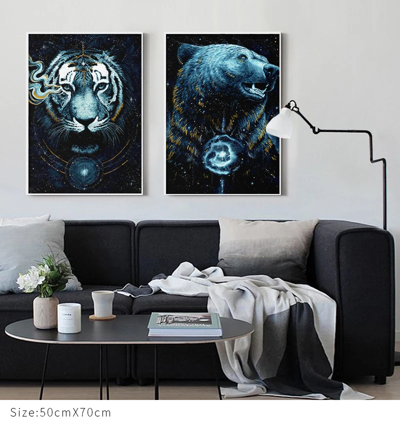 Ослепительные Звездные животные, настенные картины, тигр, волк, Медведь, Лев, плакаты и принты, Современная Картина на холсте, настенные картины, декор для гостиной